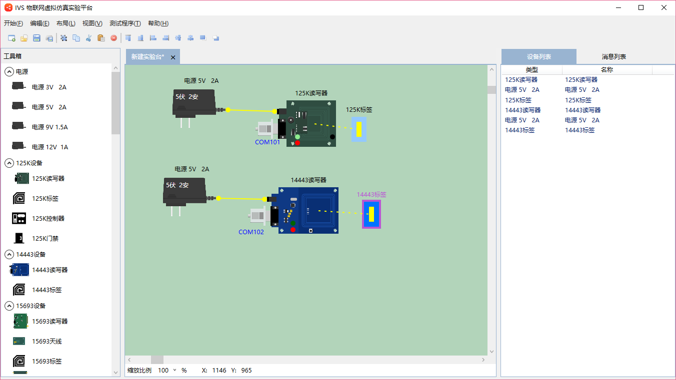 《物聯網虛擬仿真實驗平臺》虛擬仿真了各種RFID、WSN等常見的物聯網感知層設備。具有真實設備的完整接口和特性,可以通過串口及網絡進行訪問??梢灾蔚膶嶒瀮热萑缦卤硭荆?/span>
